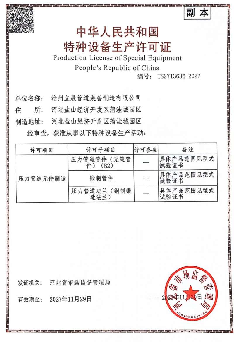 滄州立辰管道裝備制造有限公司是一家制造、銷(xiāo)售為一體的加工企業(yè),公司已通過(guò)特